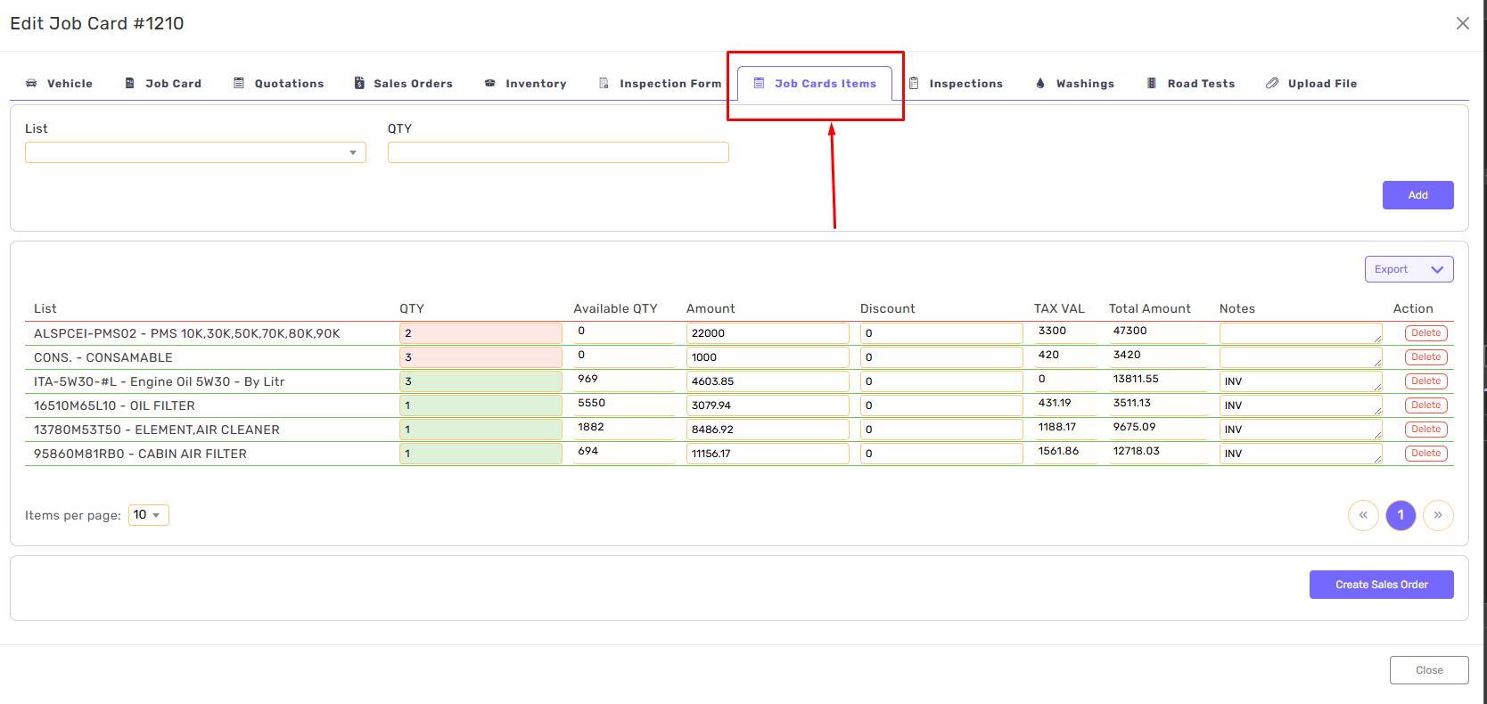 The job card have been updated from using Job Cards Items to Quotations Items to have a better control over the amouts/Tax/Discounts ...etc.